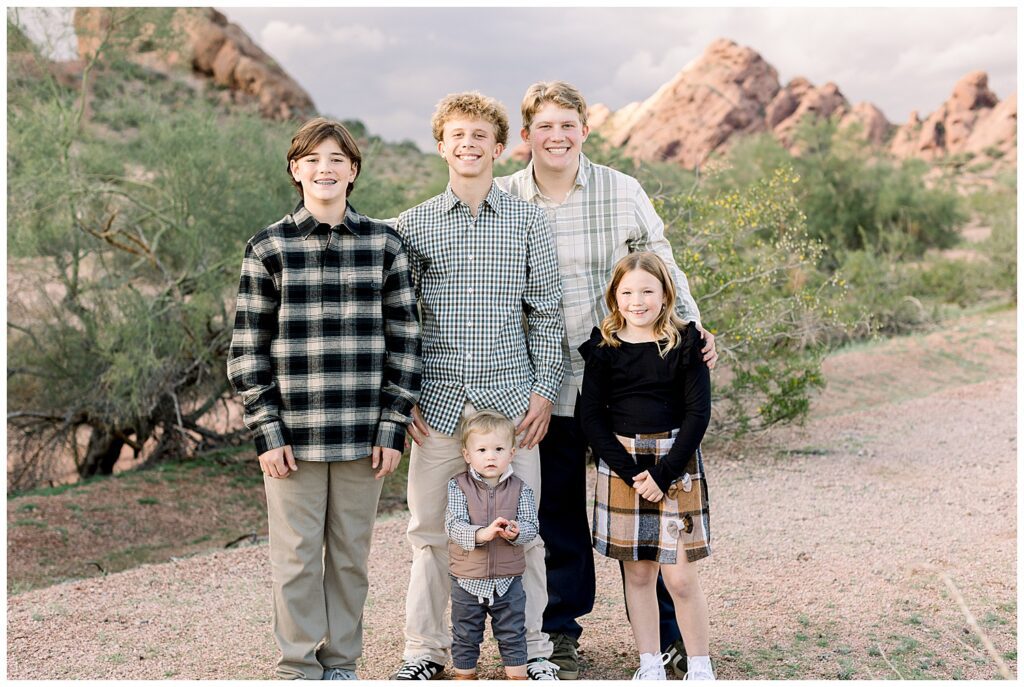 For big families, cohesive styling matters — but that doesn’t mean everyone needs to match. Choose a fall color palette with 3–4 complementary tones and let each family member express their own style within that range.