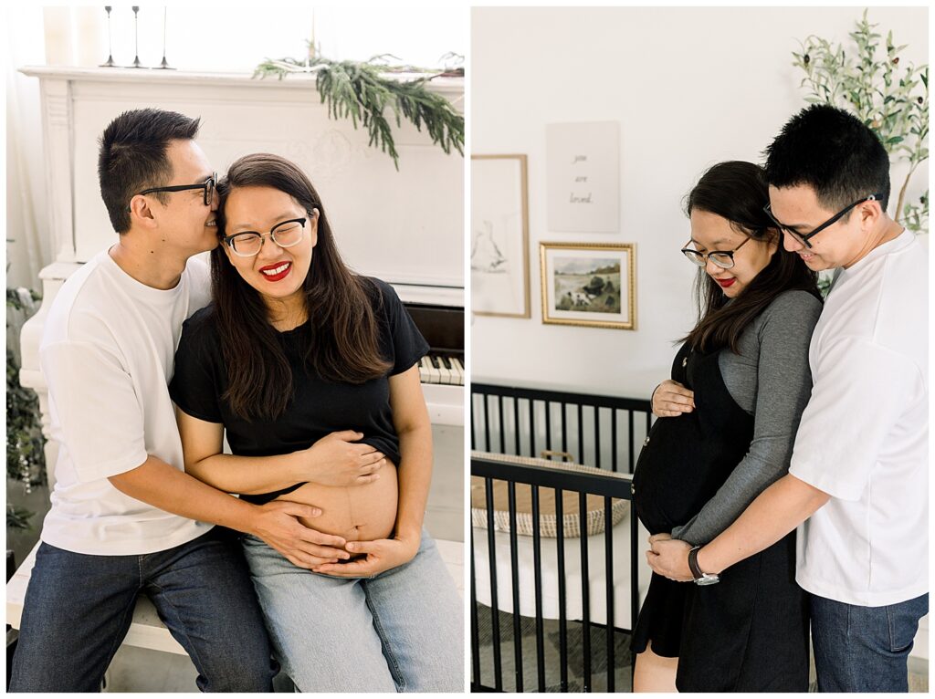 Studio maternity sessions are intentionally slow-paced. There’s time to adjust outfits, take breaks, and settle into the flow of the session. The controlled environment allows us to focus on connection, emotion, and storytelling without distractions.